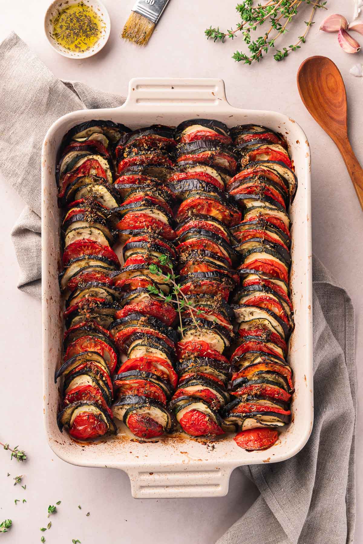 One of my favorite summer side dishes! This melt-in-your-mouth, colorful tian goes perfectly with almost any fish!